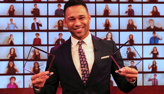 View images from the 2021 virtual Jimmy Awards program including our filming at WABC studios and our final judging session.